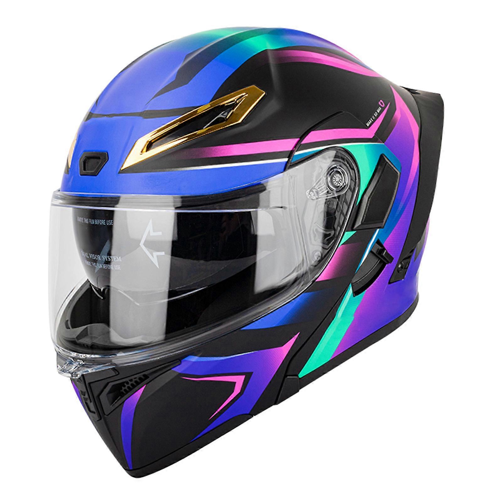 Adult Motorbike Helmet Full Face Dual Lens Flip Up Design Built in Sunshield for Cool Rider Four Seasons