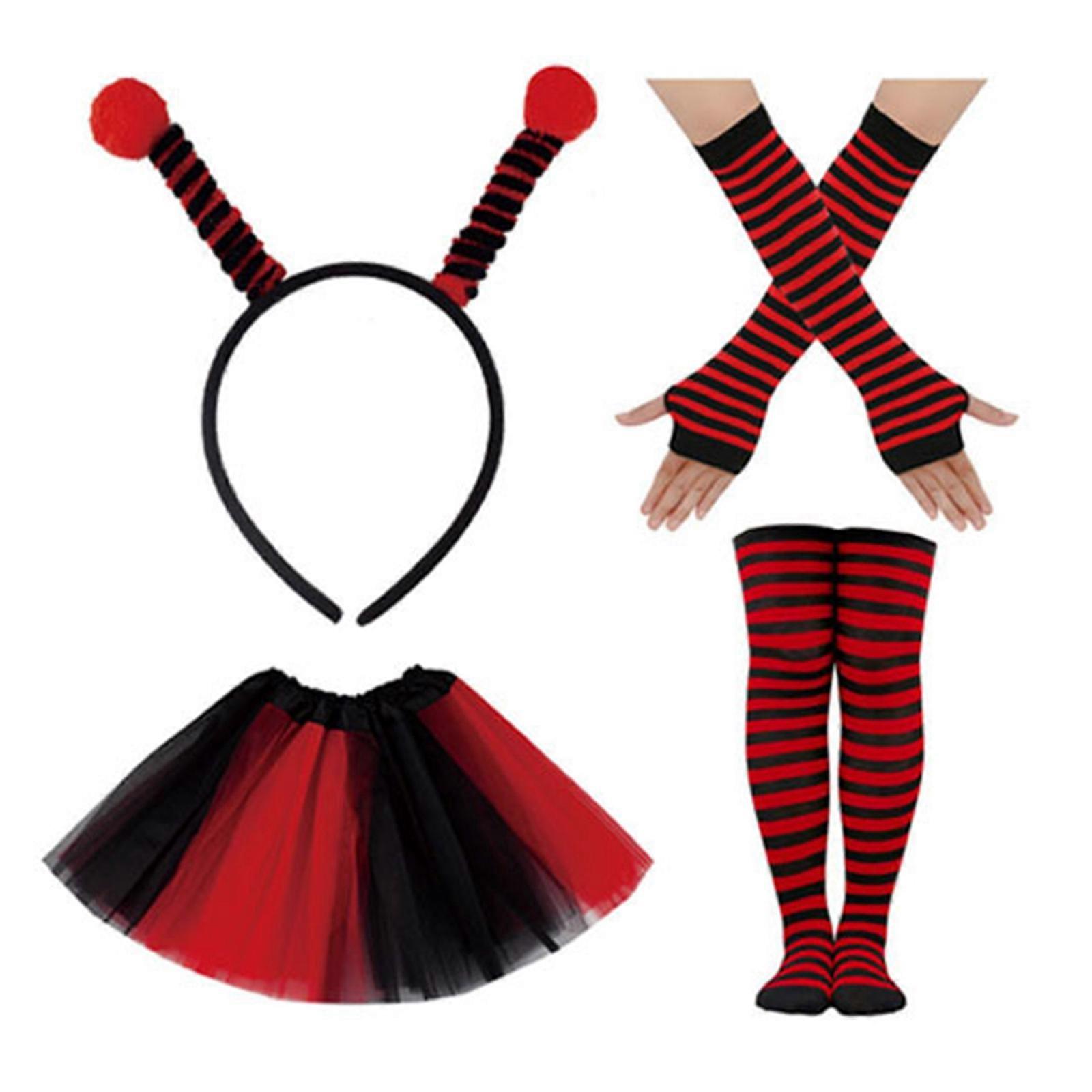 4Pcs Bees Costume Set for Adult Birthday Halloween Cosplay Party, Bees Dress up Costume Headbands Skirt Stocking Gloves Red