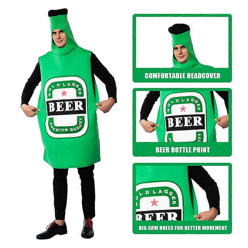 Adults Beer Bottle Costume - Large Green Lager Bottle With Label - Funny Novelty Fancy Dress Outfit Oktoberfest, Bavarian, Beer Festival, Stag Nights_