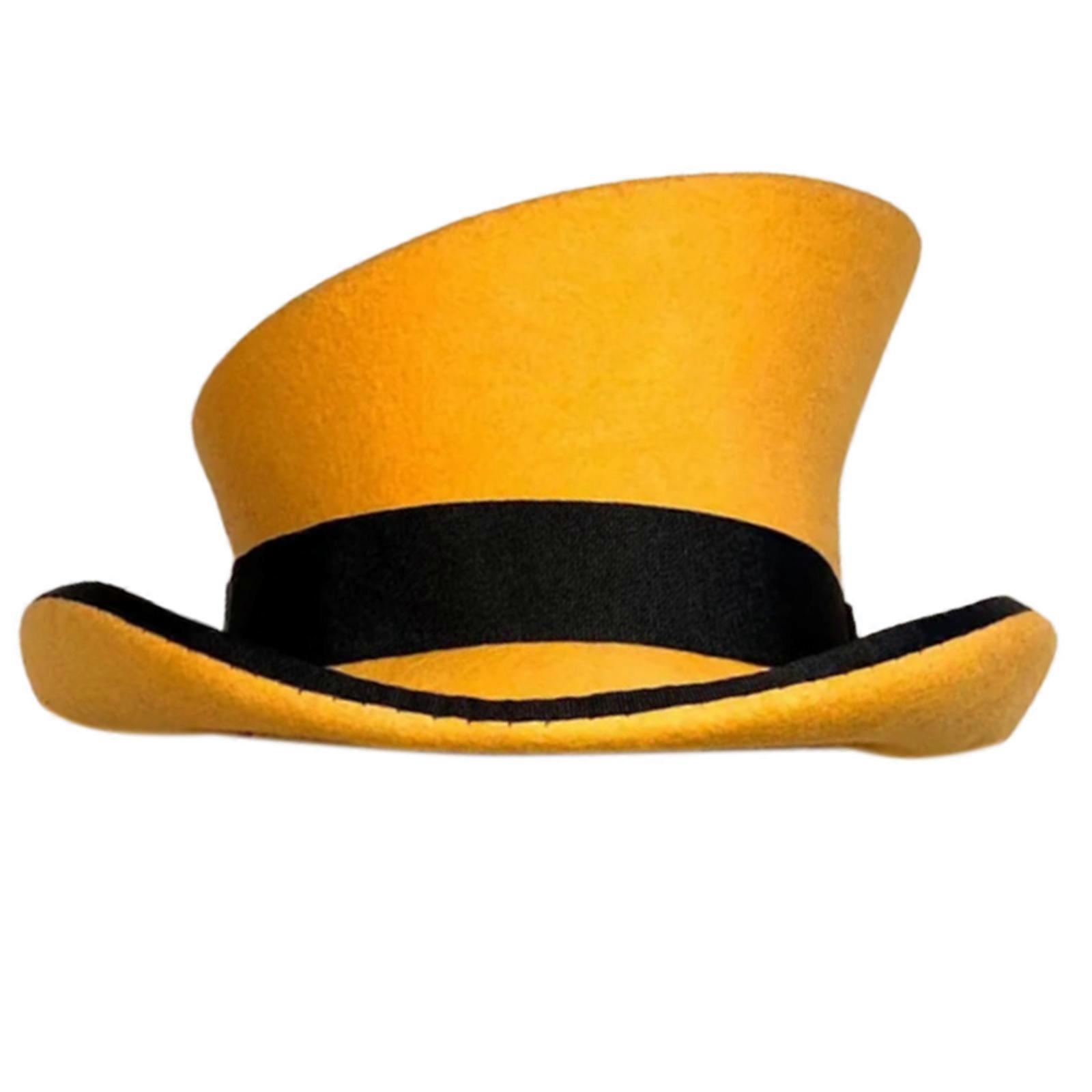 Roll Brim Fedora Hat for Adult Fashion Solid Color Panama Hat Magician Cap Woolen Hats Cosplay Costume Unisex Party Hat Yellow