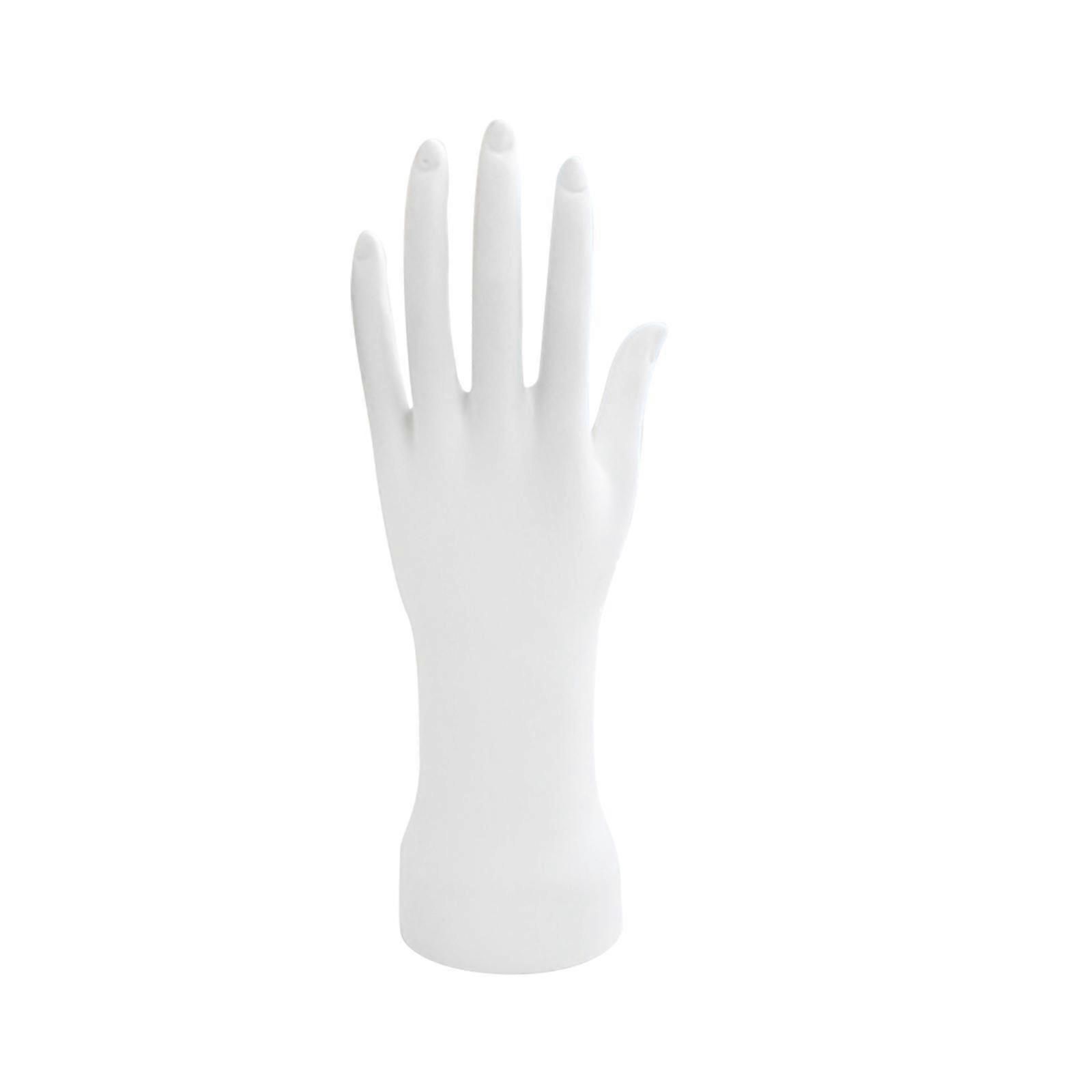 Description: 【Hand Shape Design】: The female mannequin hand can be stood up to offer display, you can easily see the wearing result. Vivid shape, practical, and beautiful. 【Premium Material】: The nail art display model is made of high quality silicone material, strong and sturdy, with no fading and deformation, and durable to use. 【Multi Functions】: The multifunctional hand jewelry holder is suitable for displaying rings, necklaces, pendants, chains, bracelets, bangles, gloves, watch, etc. 【Jewelry Organizer】: The jewelry display stand can effectively organize your desktop and also prevent jewelry from being lost, making it easy for you to find the rings you want to wear. 【Wide Applications】: The rings display stand rack is suitable for homes, retail shops, stores, desktops, showcases, shows, countertops, photograph props, etc.       Specification: Material: Silicone Size: 30.5cm/12.01inch Package Includes: 1 Female Mannequin Hand Note: Please allow slightly errors due to manual measurement and different monitors.