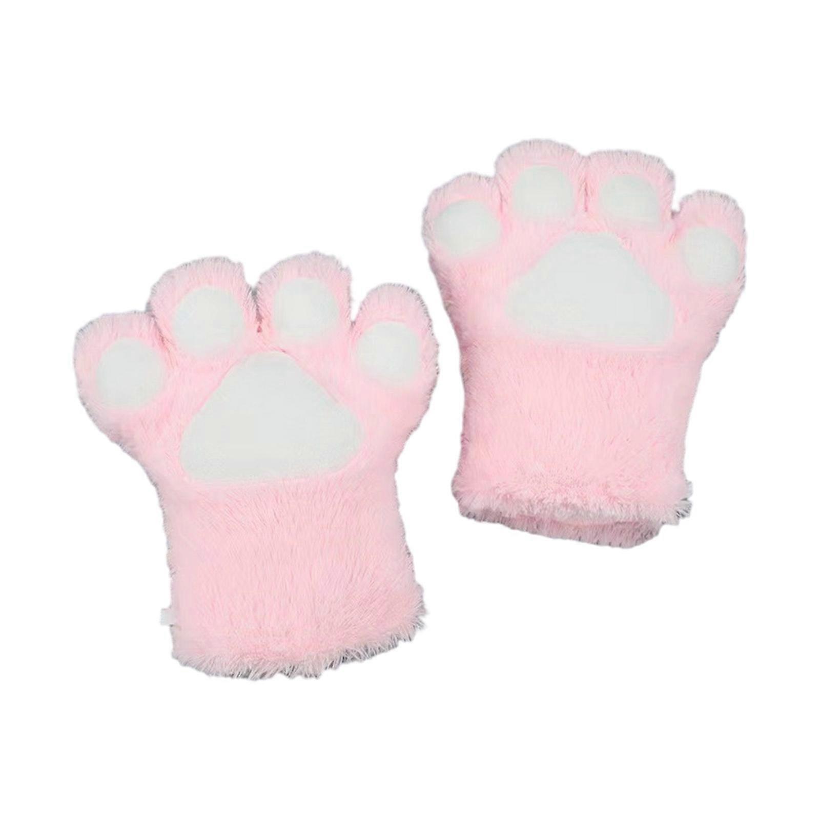 Adult Teens Easter Gloves Cosplay Mittens Half-Finger Gloves Cartoon Kitten Paw Shape Mittens Carnivals Party Supplies pink