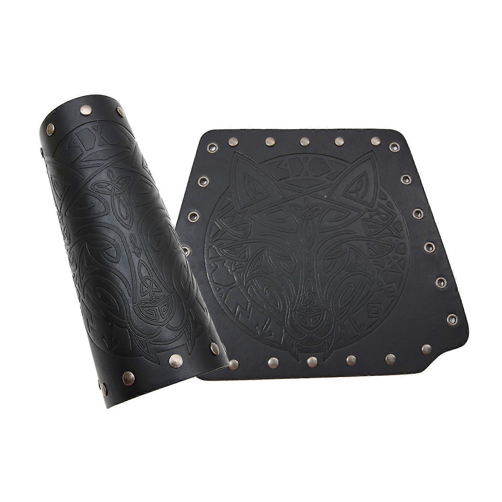 Adults Faux Leathers Arm Guards Medieval Belt Leathers Lace Up Bracers One Size Leathers Armband black wolf head