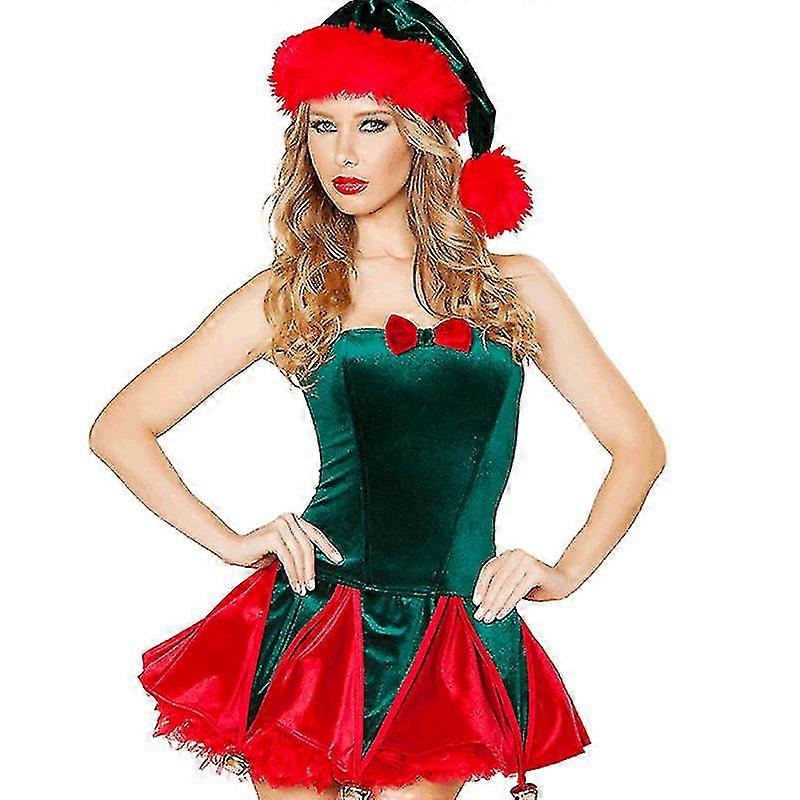 Adult Women's Red Green Santa Claus Costume Cosplay Green Spirit Bodysuit+hat+leggings