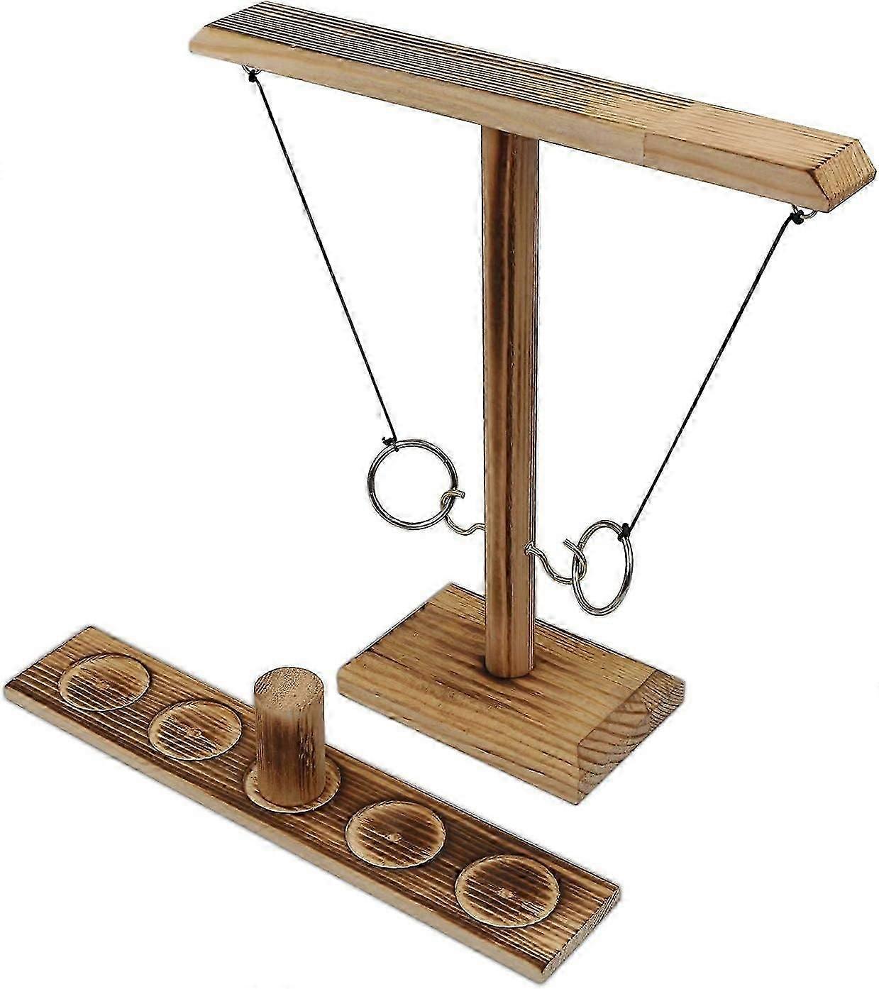 Ring Toss Games for Adults Kids, Outdoor Indoor Handmade Wooden Hookey Ring Toss Game
