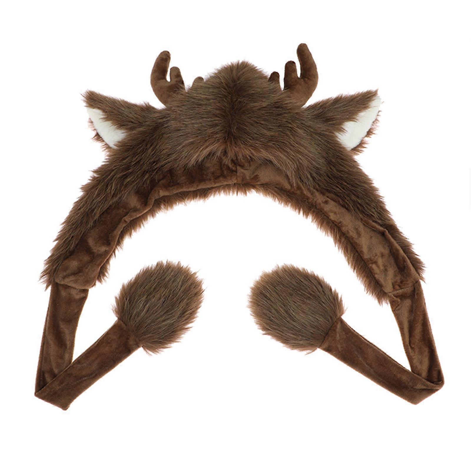 Furry Plush Deer Earflap Hat for Adult Kids Funny Antler Hat Cold Weather Trapper Hat Winter Warm Hat Cosplay Accessory
