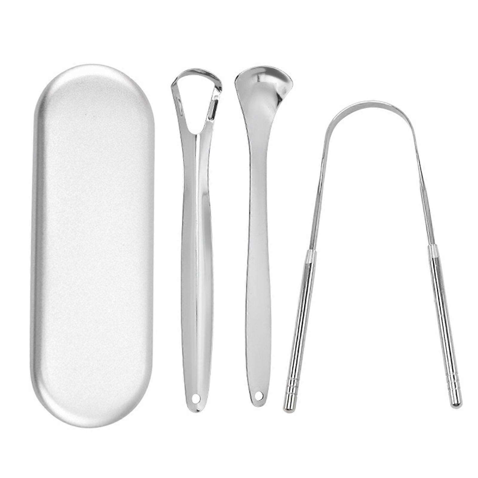 Features: Metal tongue scrapper set,come with 3pcs tongue cleaners scrapers,1pc u shaped,1pc hollow scraper,1pc spoon scraper.different shaped and-sizes meet your diversified needs, suitable for adults and kids. well packed in a carrying box for storage, keep it clean and dust-proof. Quality material,these tongue cleaners are made of stainless steel with ultimate-strength, durable and sturdy, non-toxic and rustproof, will not easy to deform or break, better than plastic. smooth-edge without burr, easy to clean and use. Sweet warm-gift, it is a ideal-gift for self-care-or share with family. Improve oral-health,the tongue scraper is the best remedy-to reduce bad breath by clean your tongue and removing food-residue, improved your confidence and better overall health. Ergonomics design, safer-to use,each tongue scraper have extra-wider scraping head and smooth-surface, which can effectively scraping all the corners of your tongue but not hurting you. three different scrapers suit for both small mouth and large mouth, allow you to use and replace according to your favor. Specifications: Material:Stainless Steel Style:Silver-S,Gold-S,Silver-Large Package Includes: 1 Piece Tongue Cleaner note: Please allow 1-2cm errors due to manual measurement. Due to the difference betweeen different monitors,the picture may not reflect the actual color of the item.