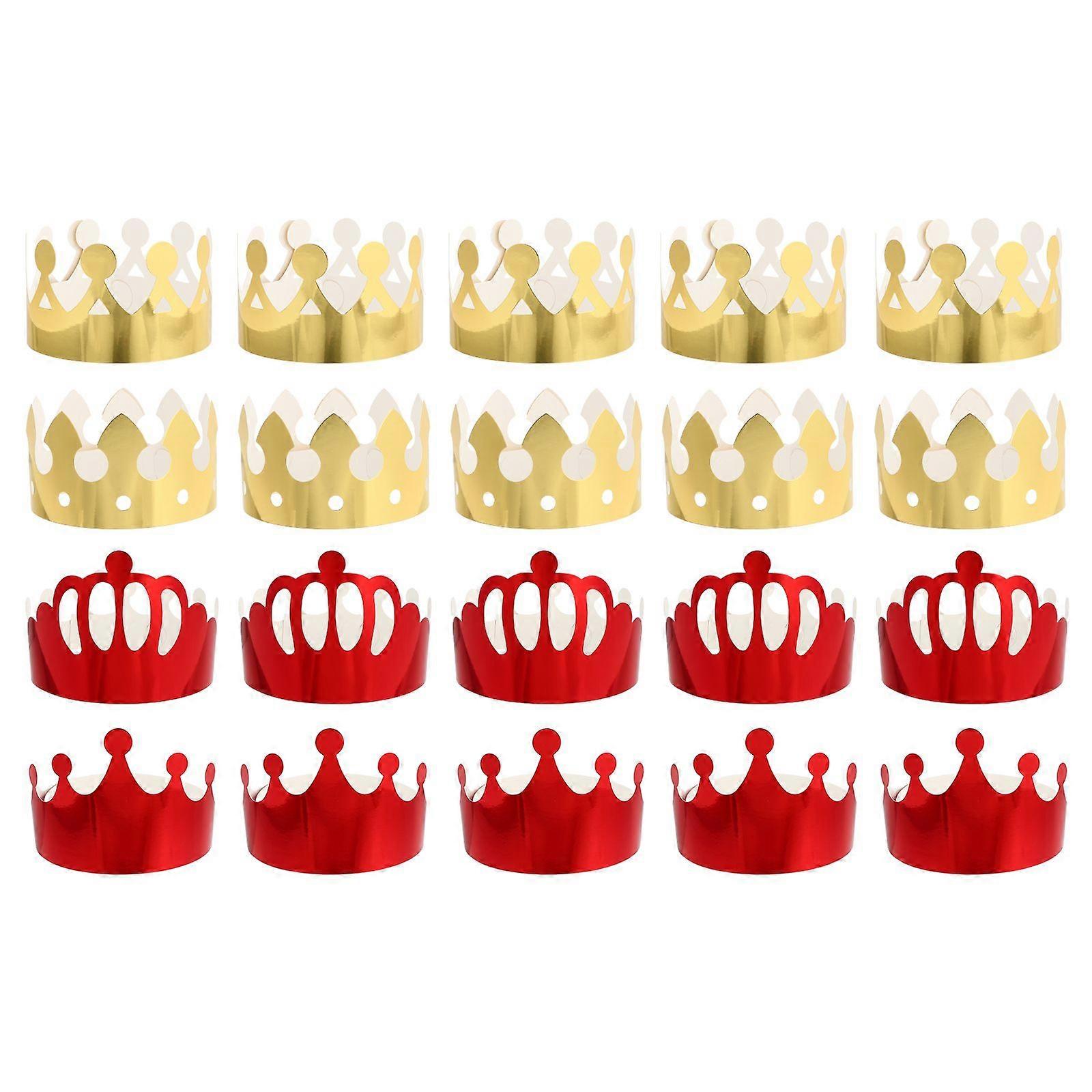 20pcs Golden and Red Paper Crown Hats Birthday Party for Adults Children