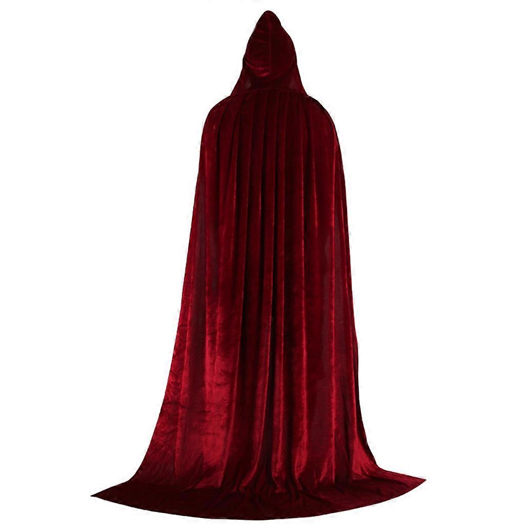 Adult Kids Halloween Velvet Cloak Cape Hooded Medieval Costume Witch Wicca for Vampire Elf Purim Carnival Party Burgundy