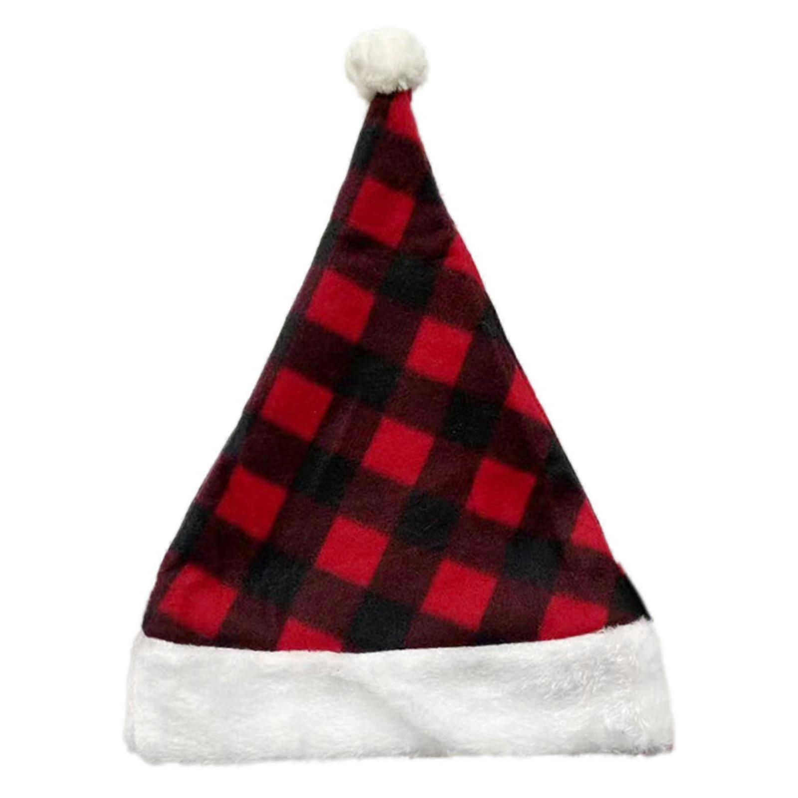 Adult Children Long Christmas Hat Santa Claus Caps New Year Christmas Party Decoration Fluffy Buffalo Plaid Red