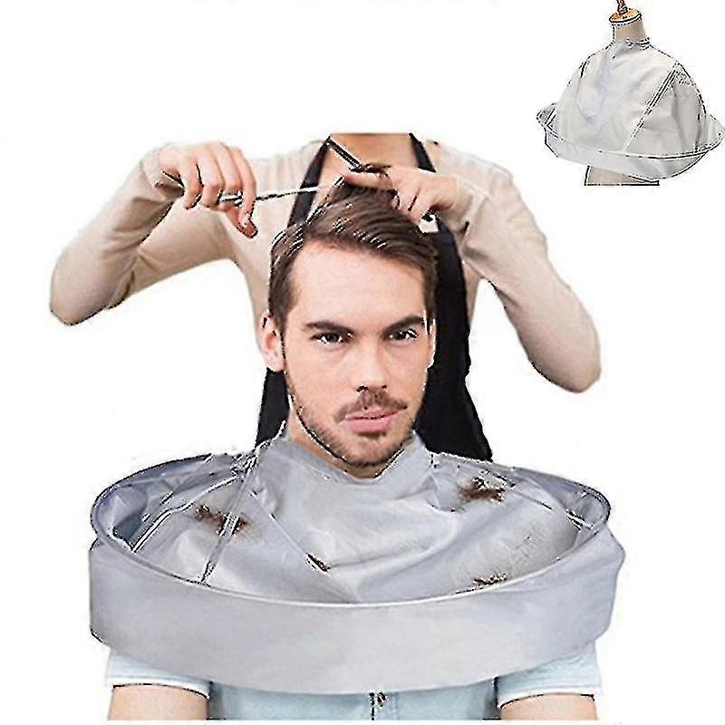 DIY Hair Cutting Cloak Umbrella Cape Cutting Cloak Wrap Hair Shave Apron Hair Barber Gown Cover Household Cleaning Protecter Product Description: This handy hair cutting umbrella catches those annoying hair clippings that fall down your neck, into your clothes and onto the floor. Imagine no more sweeping or vacuuming. No more itchy, irritated skin. Great for kids or adults. Fastens comfortably but snuggly with a "touch" closure. This hair care product is made of wipe-clean nylon. Folds for compact storage. 22" diam. Rests on Shoulders Like an Upside Down Umbrella to Catch Messy Hair Clippings For home and salon useAdjusts to fit neck Not scattered by the cut hair The easy mantle to put on only Clothes and the floor can be trimmed without making them dirty because the cut hair collects at the ditch of the manteau. Diameter: 60cm. Color: silver gray style: package edge Transparent OPP Bag Packaging Folding Dimensions:About 30cm * 30cm * 1cm include: 1x DIY Hair Cutting Cloak Umbrella