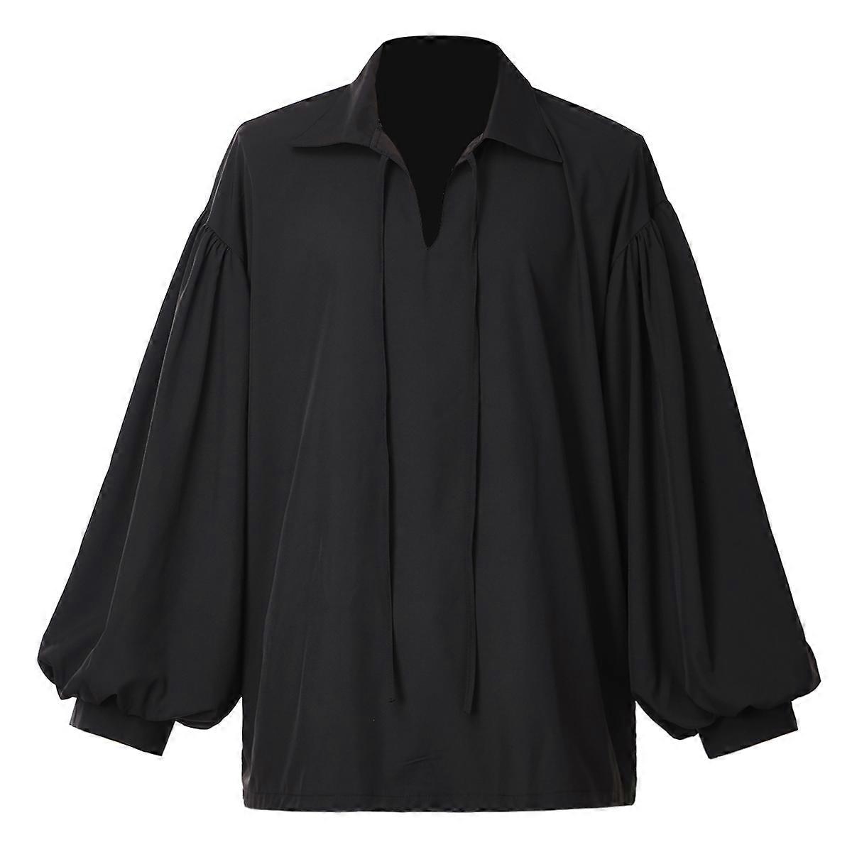 Adult Men Larp Pirate Shirt Tops Medieval Renaissance Lacing Up Bandage Vintage Costume Fluffy Sleeve Blouse Vampire Cosplay