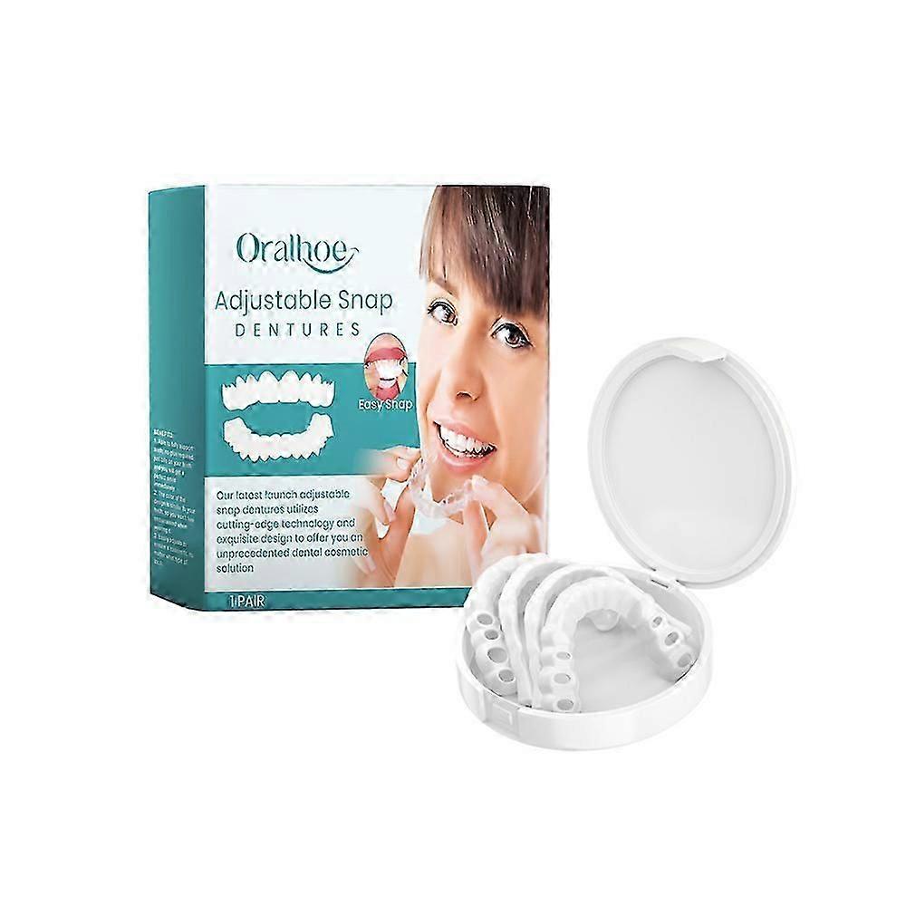 Product Name: Dentures Product Function: Improve Appearance, Firmness, Fit Product Material: Environmentally Friendly Material Applicable People: General Features: 1. Perfect Teeth, Instant Whitening, Increased Confidence In Your Smile 2. Easy Fit, Seamless And Comfortable, Experience Dentures That Fit Like A Glove From The First Moment. It Ensures A Comfortable And Secure Fit, Allowing You To Enjoy Your Day Without Worries 3. Suitable For Any Occasion, Whether It Is A Special Occasion Or A Casual Day Outdoors, It Can Ensure A Perfect Smile, Enhance Your Appearance, Be Full Of Confidence, And Be Ready To Shine In Any Occasion 4. Easy To Use, Cheaper, Non-invasive 5. Tailor-made Color Harmony, Fully Adjustable Color, Seamlessly Adapting To Your Natural Teeth, Creating Color-harmonious Teeth, Perfectly Complementing Natural Teeth Package Included: 1/2/3Piece* (1 Denture)