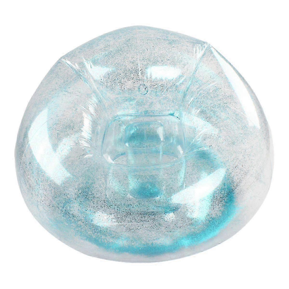 Adult Transparent Folding Inflatable Sofa Chair with Sequin Decor for Leisure Nap Sleeping Blue