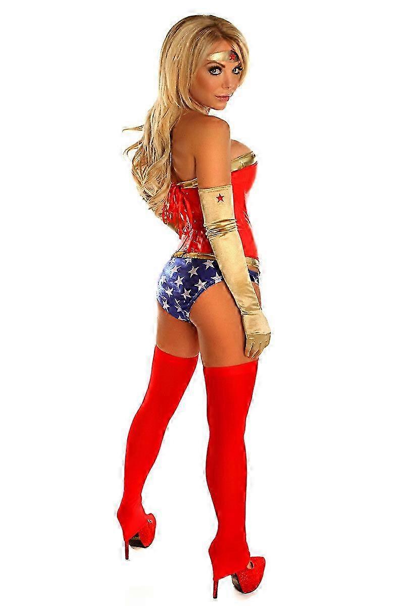 Adult Wonder Powerful Super Woman Superhero Corset Costume Halloween Cosplay Outfit