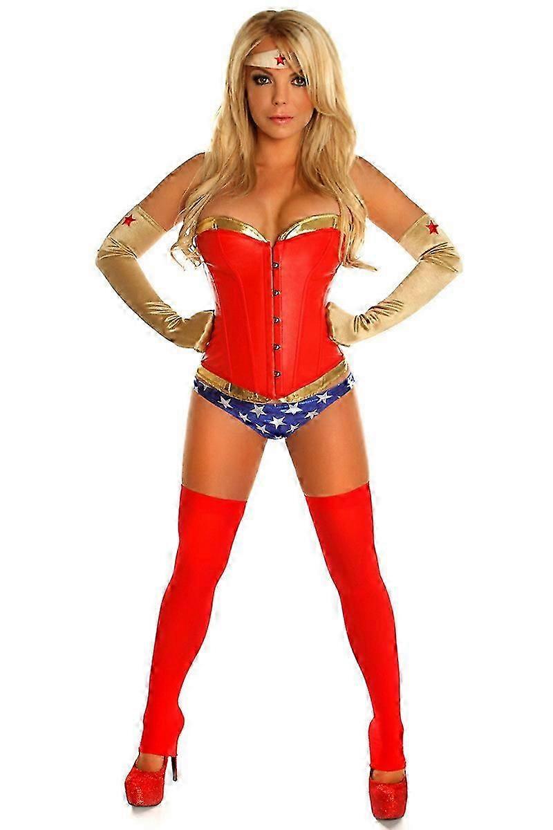 Adult Wonder Powerful Super Woman Superhero Corset Costume Halloween Cosplay Outfit