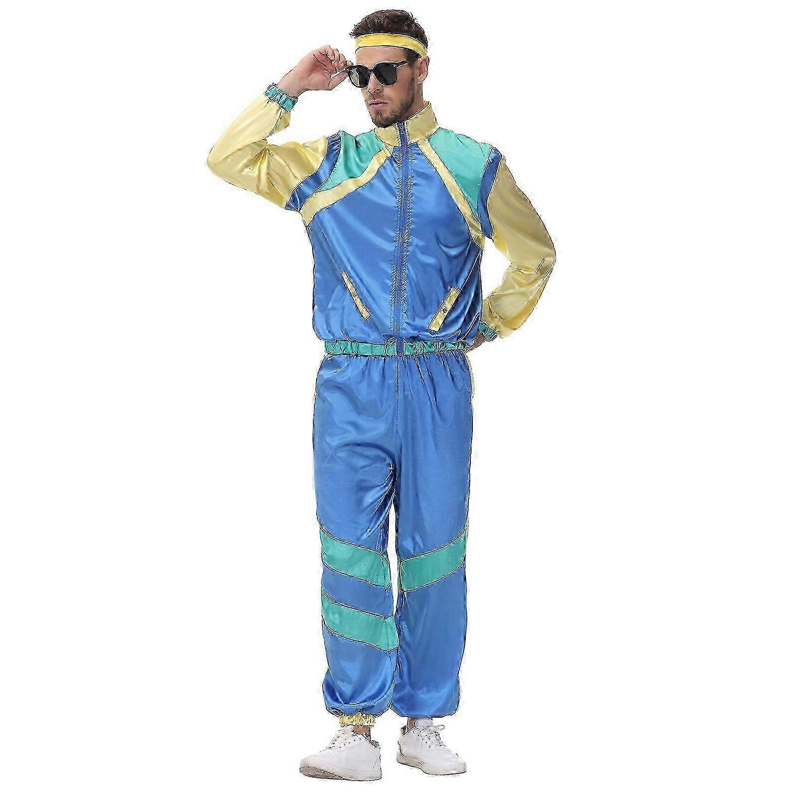Adult 70s 80s Shell Suit Fancy Dress Costume, 80s Tracksuit acket and Trousers Set