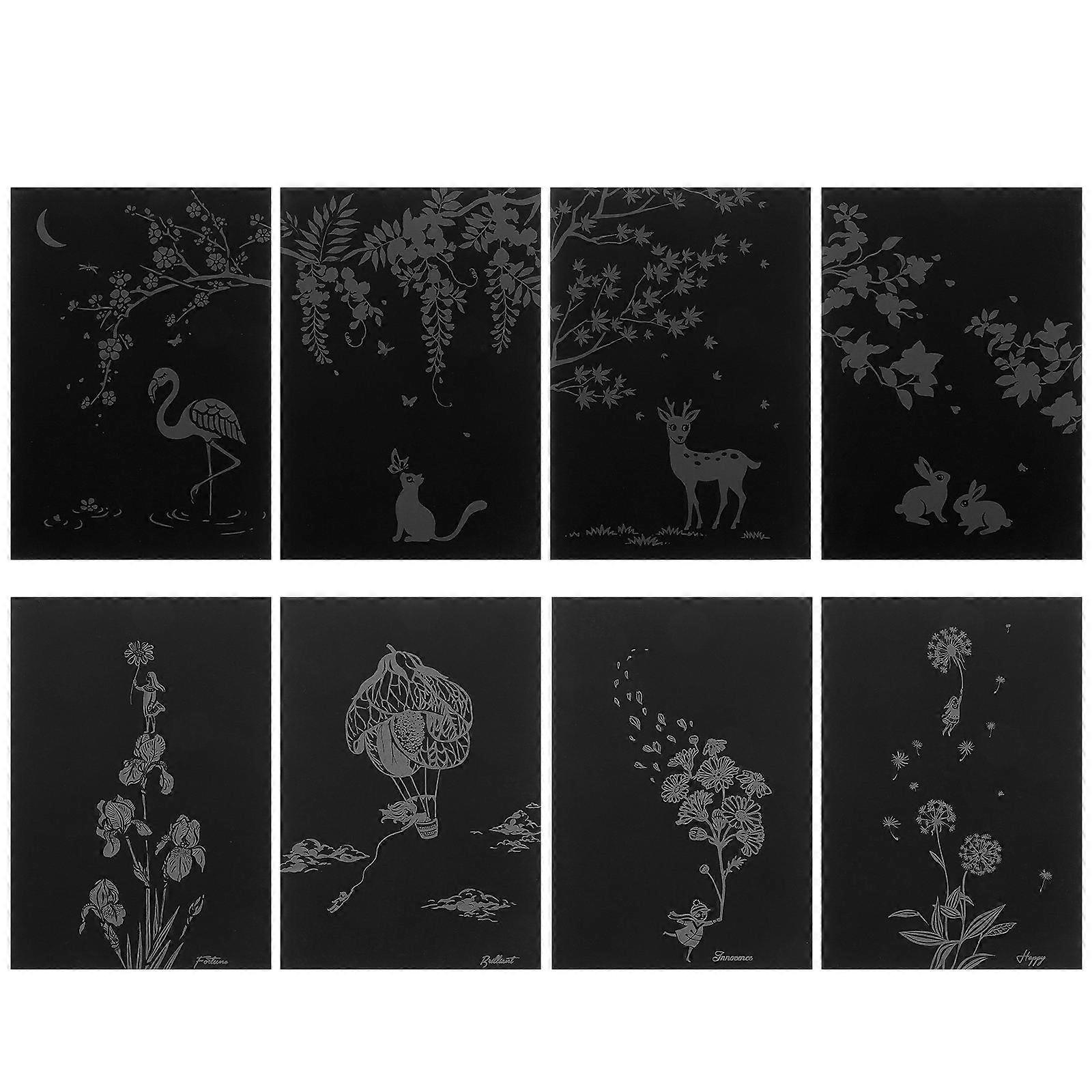 8pcs Scratch Painting Set for Adults – Portable Sketch Pad with Animal & Plant Designs on Black Coated Cards – Creative DIY Art & Hand Skill