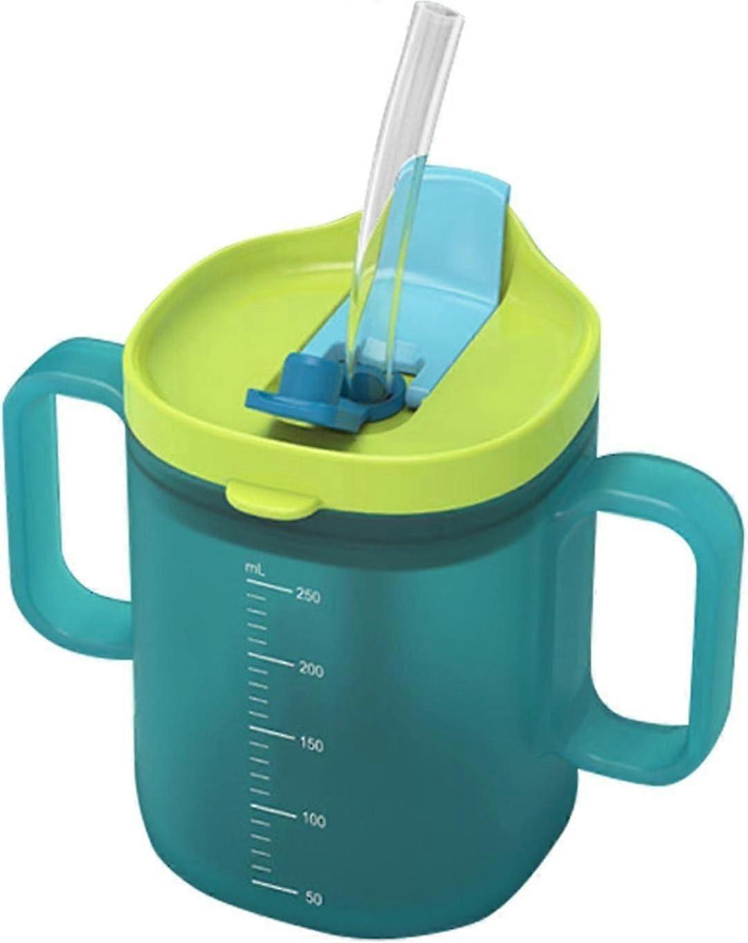 Spill Proof Cups for Adults, Water Cups for Seniors, 300ml Elderly Cup with Handles, Water Bottle, Feeding Cup, Tumbler with Lid and Straw