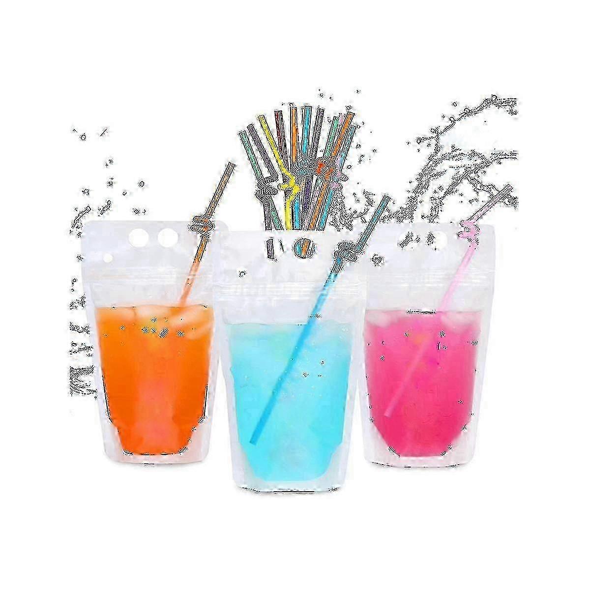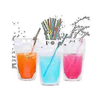 100pcs 16oz Drink Pouches For Adults - Drink Pouches With Straws X100 - Resealable Smoothie Pouches