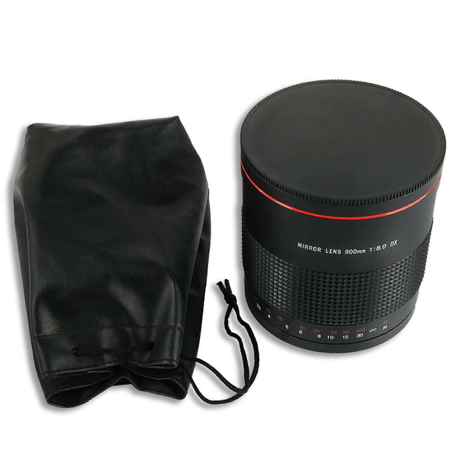 Large Aperture 900mm F8.0 Telephoto Mirror Lens with T2 Mount Adapter Ring & Lens Storage Pouch for Most DSLR Cameras