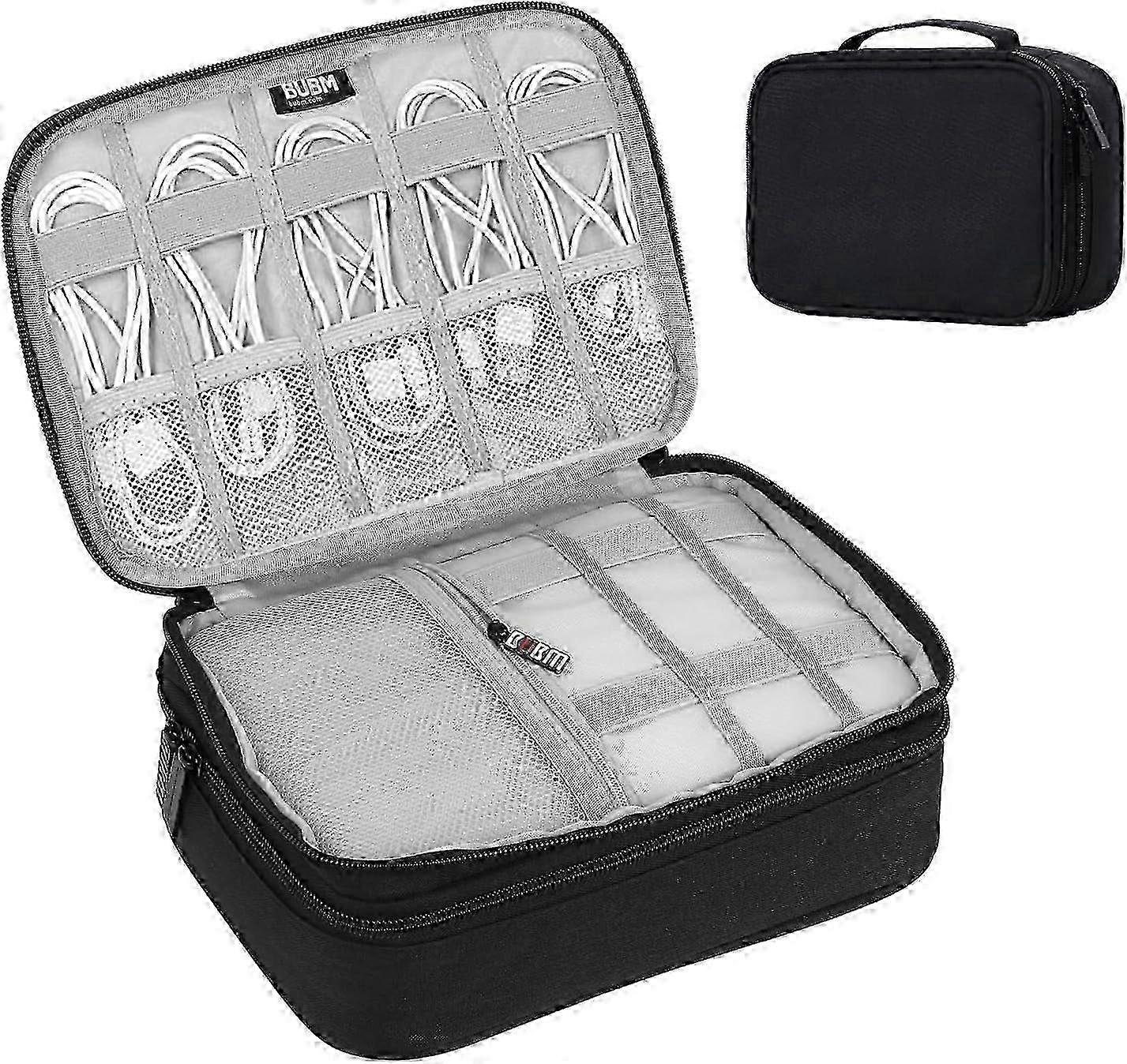 Large Double Layer Travel Cable Organizer Bag, Portable Electronics Accessories Storage Case with 2 Compartments, Black