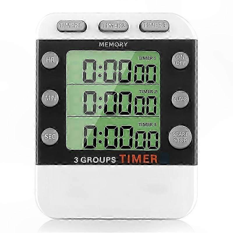 3-Channel Digital Kitchen Timer with Large Display and Loud Alarm, Count Up/Down Function for Cooking