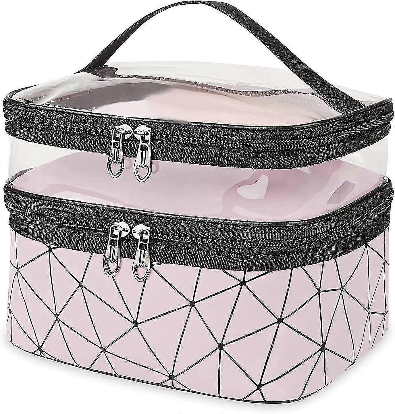 Large Toiletry Bag Pink Travel Cosmetic Bags for Women Waterproof Clear Double Layer Make up Bag Organizer with Compartments