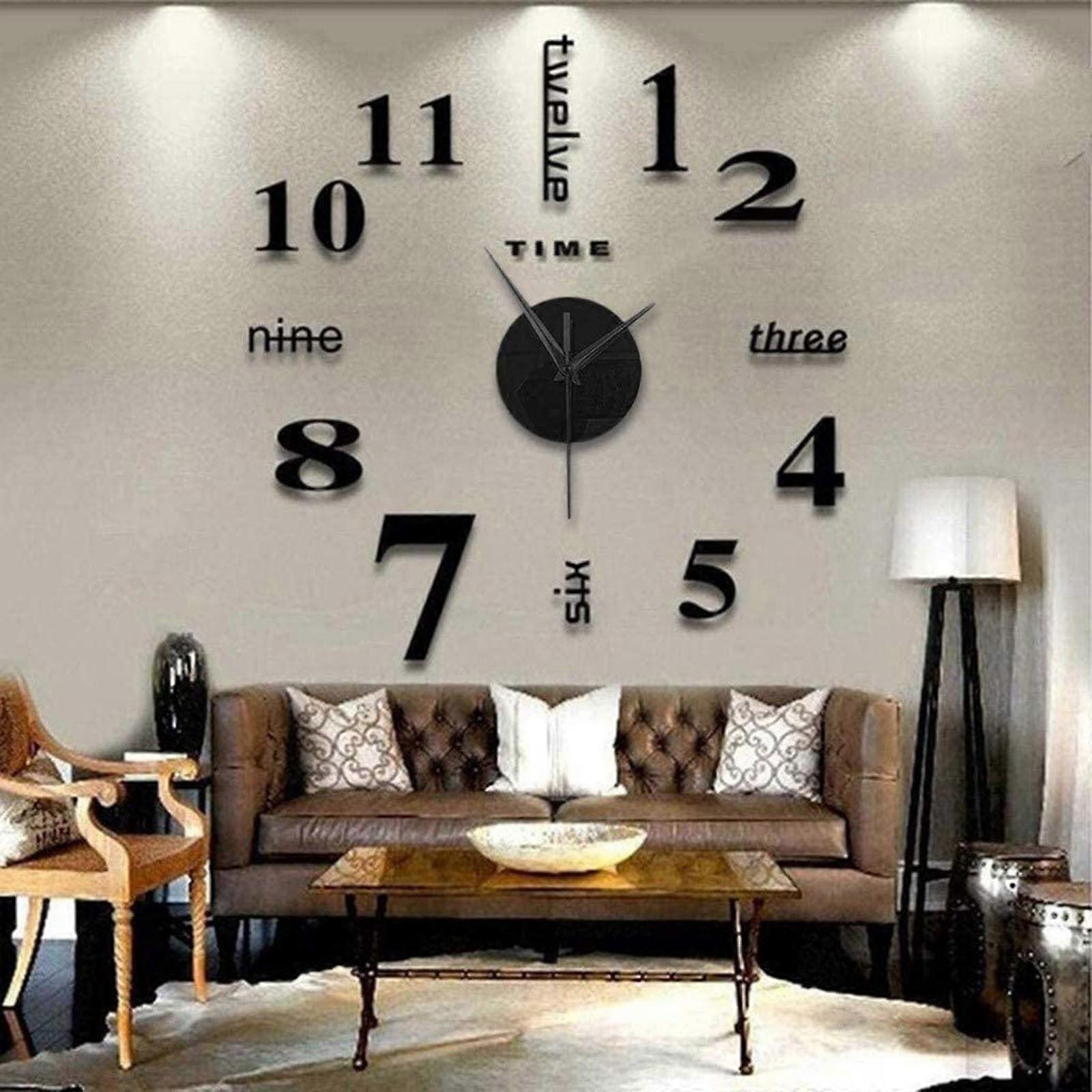 Large Frameless DIY Wall Mute Clock Mirror Sticker Home Office Decor WUD5444