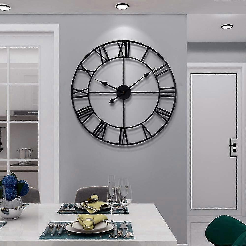 Large Round Metal Wall Clock Vintage Style Silent Not Ticking Battery Operated 40cm Black Roman Numeral Clock 2025