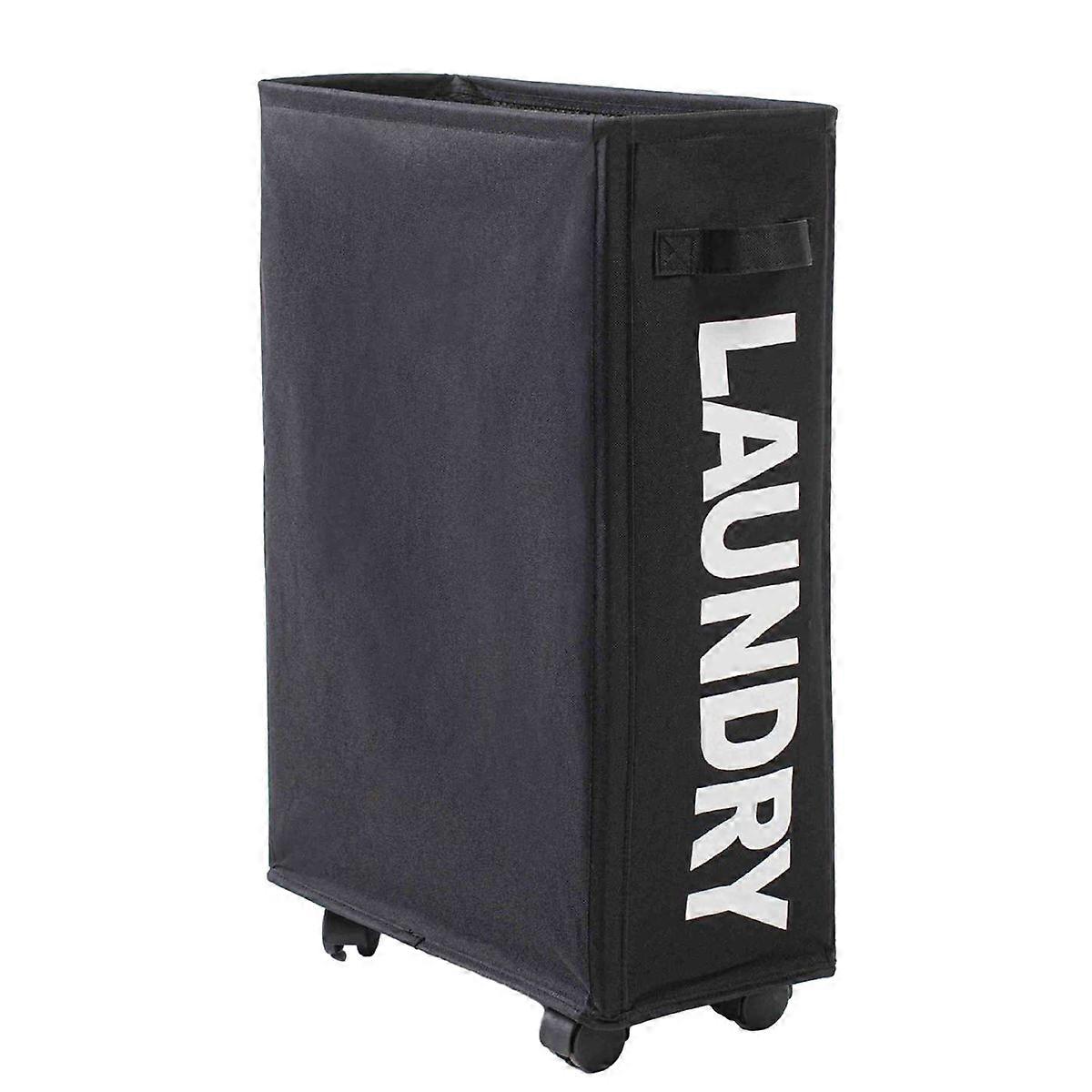 Large Laundry Basket Wheels Laundry Basket with Handles Cloth Storage Bin for Household Sundries Black