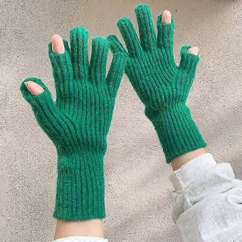 Large Size Women's Winter Touch Screen Gloves Thicken Warm Knitted Stretch Gloves Full Finger Outdoor Skiing Gloves