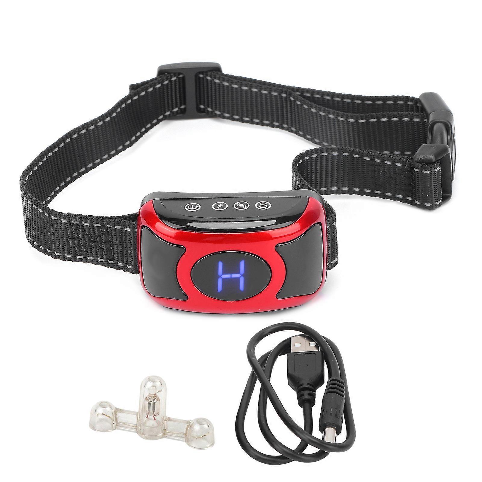 Feature: 1. The lithium battery is designed with a large capacity of 300mAh, which has a larger capacity than most products on the market, and can be used for up to 1‑3 days. 2. The dog collar has a digital automatic code matching memory function and easy‑to‑read blue digital display, which is with sound, vibration, sensitivity and power. 3. 3‑step adjuster, which can adjust the static electricity, vibration and sensitivity of the receiver, you can adjust it according to your pet's personality and size. 4. Lighter styling design of this collar can be wore without pressure by no matter large, medium or small dog. You won't have to worry about the sizes. 5. High‑quality nylon strap with reflective stripe, which can increase the safety and visibility of the dog. You can find your dog in the dark environment. Specification: Item Type: Dog Training Collar Material: ABS Battery Type: Lithium Battery (Built-in Battery Shipped) Battery Capacity: 300mAh Product Size: Host: Approx. 6.5x2.5cm/2.6x1in Dog Training Bark Stop Collar Length: Approx. 55.5cm/21.9in Color: Red. Package List: 1 x Dog Training Collar1 x USB Charging Cable1 x Test Light1 x English Manual Note: 1. Please read and follow the instructions in this manual. It is important to wear the collar correctly. When pets wear collars that are too long or too tight, they can cause skin damage. Wearing too long or too tight may cause stress and cause skin damage. This is often mistaken for burns.2. Don't tie the device tightly around the dog's neck.3. Do not leave the device on the dog for more than 8 hours.4. Replace the collar on the pet's neck every 1 or 2 hours. Please allow slight deviations due to manual measurement.