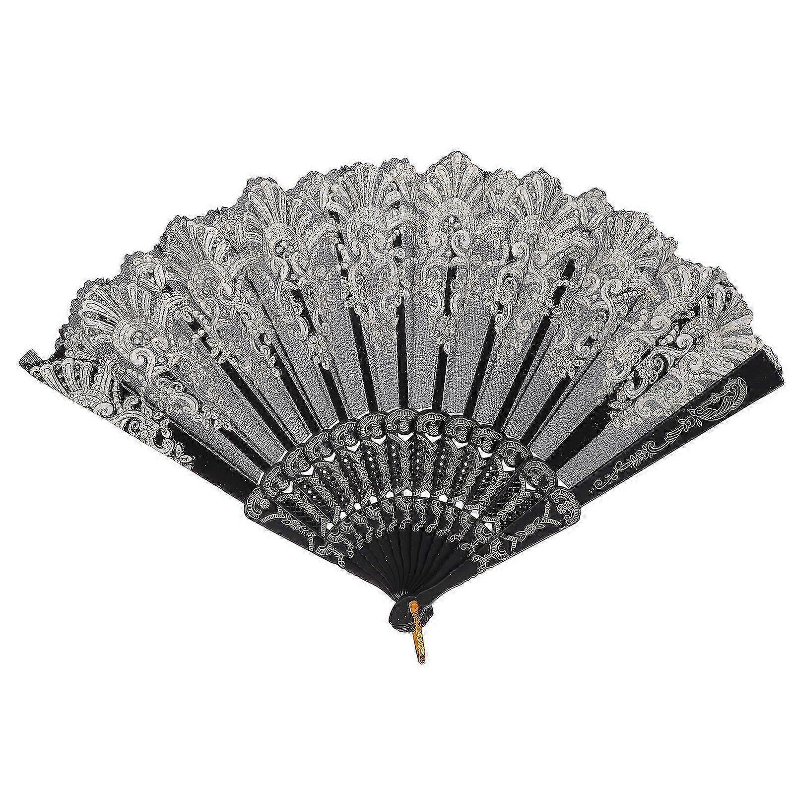 Large Folding Hand Fan Chinese Style Printed Foldable Fan Festival Gift Performance Fan (Black)