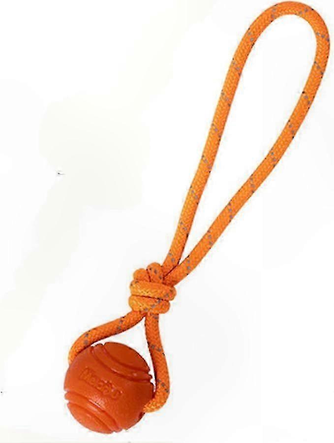 Durable Rubber Dog Ball with String for Large Dogs, Orange, Chew-Resistant Interactive Toy
