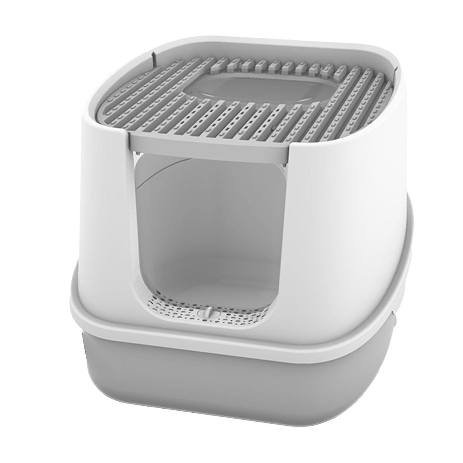 Large Cat Toilet Split Litter Box Tray Fully Enclosed Activated Carbon Deodorization Greyish White