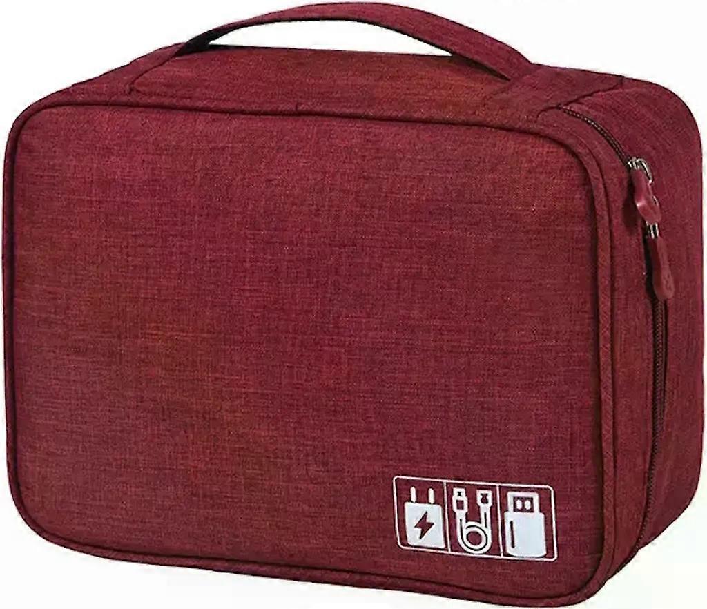 This large electronics bag made of tear-resistant nylon fabric is water-repellent and protects electronic accessories from dust, water, and shocks The large cable bag offers enough space with up to 5 individually divisible compartments and 5 elastic loops with a mesh pocket underneath The electronics organizer bag is approx. 24.5 x 18 x 10 cm and fits easily into any backpack or hand luggage The ideal companion on vacation or when traveling to safely store all electronic accessories such as chargers, charging cables, power banks, USB sticks, SD cards, computer mice, and much more Product details: Material: 300D polyester Color: red Size: approx. 24.5 x 18 x 10 cm Weight: approx. 175 g Scope of delivery: 1 x electronics bag (without contents)