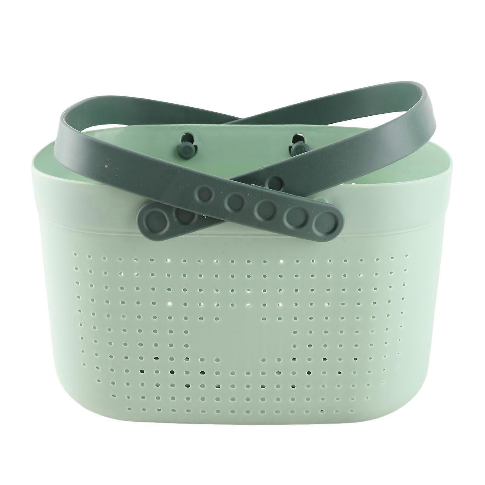 Portable Shower Basket with Large Capacity and Ventilation Holes, Plastic Storage Basket with Handles for Bathroom Organization Green