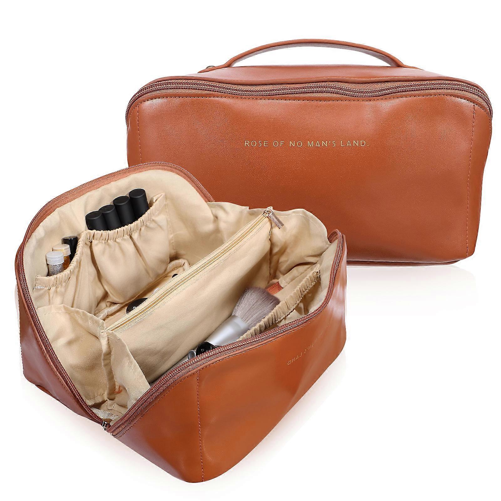 Large Capacity Portable Makeup Bag for Travel PU Cosmetic Storage Organizer with Handle for Women