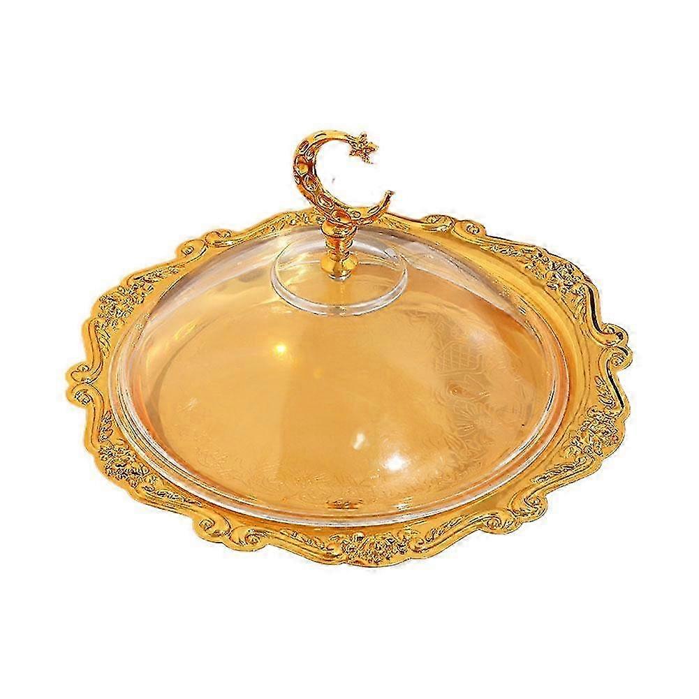 Large Capacity Ramadan Tray With Dome Lid Dessert Plate Golden Vintage Plate 2025