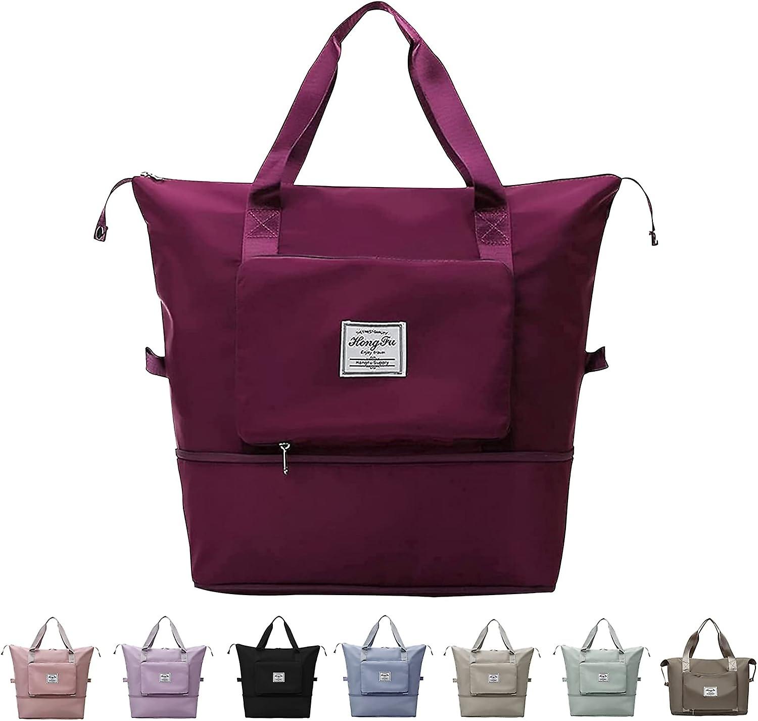 【Multi-purpose Design Overnight bag】- Made with lightweight waterproof and tear-resistant oxford fabric, solid, durable and strong enough to carry. Fastening: Zipper. High-quality hardware, neat stitching, and stylish design all make this bag a perfect travel bag. 【Sports Tote Gym Bag】- Greatly save space after folding, easily carry on your flight and travel after expansion. Great idea as an extra bag into your luggage bag. Folding Dimension: 28 x 18 x 4cm. Unfolding Dimension: 42 x 28 x 22cm. Expansion Dimension: 42 x 38 x 22cm. 【Airplane Friendly Travel Bag】- The bag is perfect for day-to-day use or For occasional travel, the fixed strap design on the back enables it to be placed on the luggage easily, perfectly suitable size as personal item for airplane seat in front of you, quite convenient for travel. 【Dry and Wet Separation Sports Portable Shoulder Bag】- The bottom of the zipper hides the expansion function, allowing you to solve the trouble caused by too many or too few items during travel. Two zipper pockets and two Inside patch pocket and a wet and dry separation bag on the bag. It is enough for short trips and can easily accommodate 3-5 days of travel clothes. 【WIDE RANGE OF APPLICATIONS】- Gym, Sports, Travel, Weekend, Luggage, Carry-on Bag, Shopping Bag, Beach Bag, Hiking and Camping. Suitable for women, men, teens and big kids, great idea as personal item for airline travel and emergency spare bag in the suitcase.