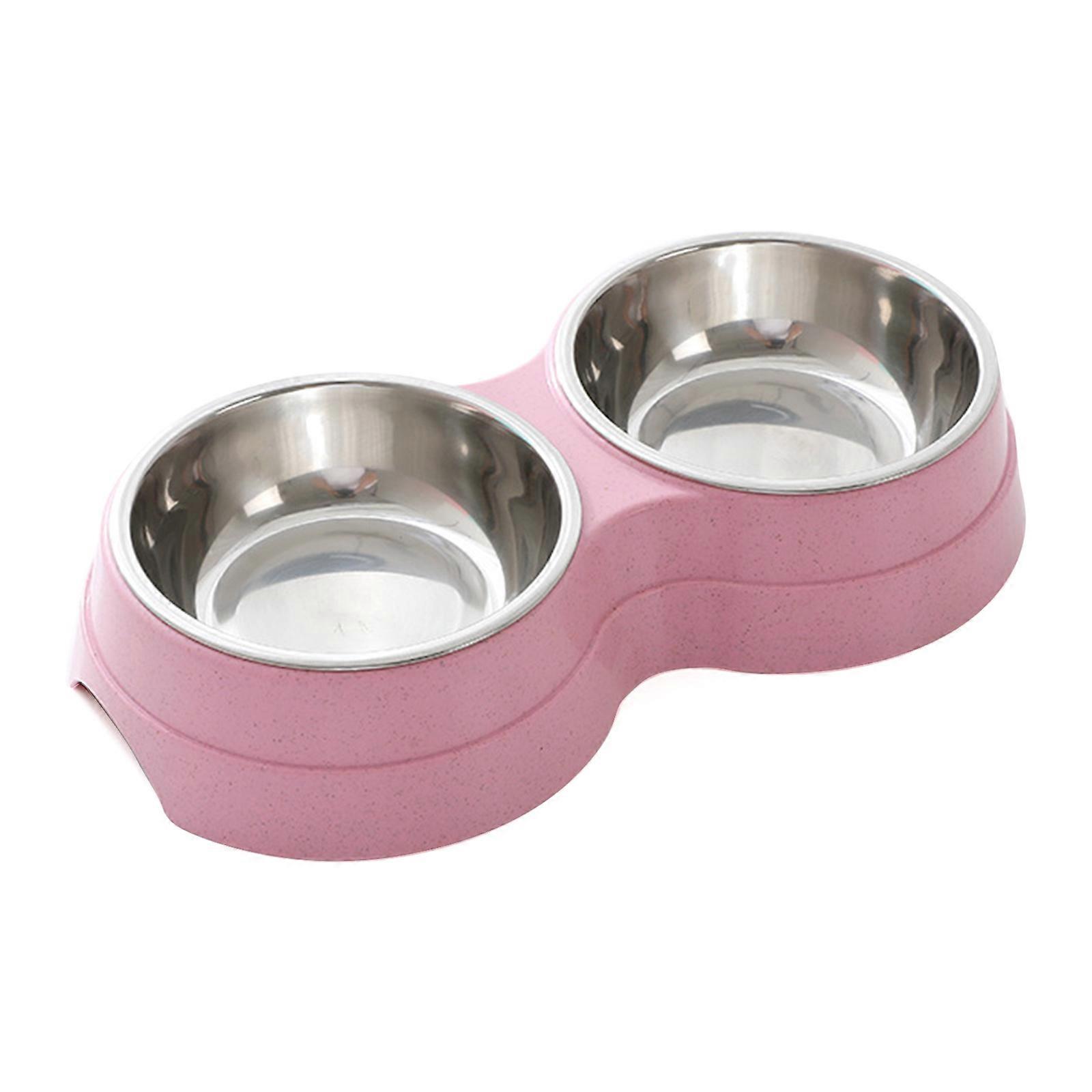 Large Capacity Dog Bowl Stainless Steel Pet Feeding Bowl Cat and Dog Food Drinking Bowl Metal Feeding Bowl Detachable Pink
