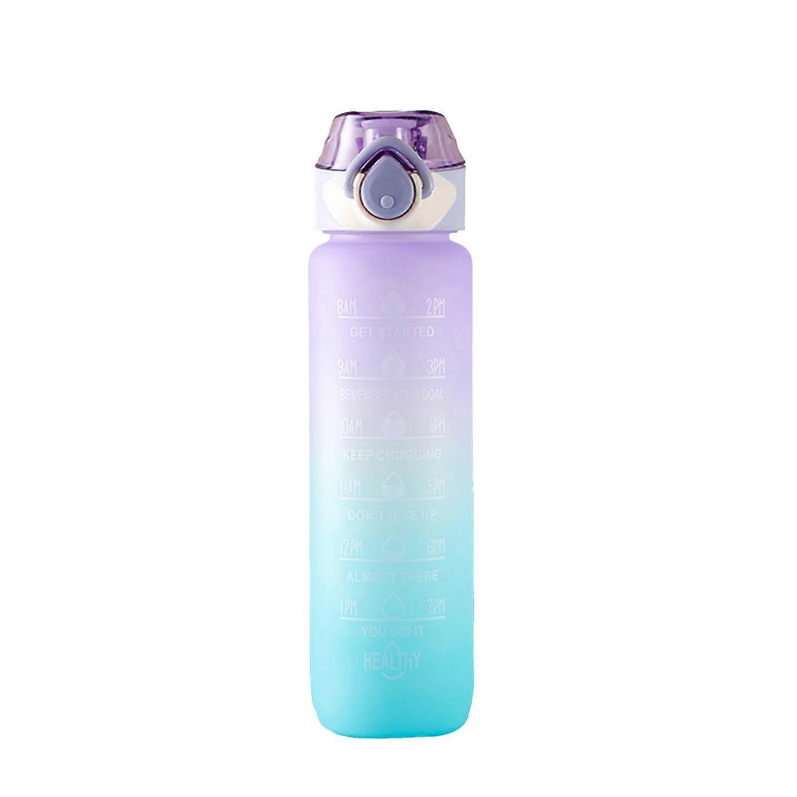 Features 1. BPA Free and Reusable: This water bottle is made of high-quality food-grade environmentally friendly reusable tritan copolyester plastic, 100% BPA free and Toxin free, ensuring healthy drinking. You will fall in love with its frosted bottle body. 2. 35oz/1000ml Large Capacity: Large Water Bottle have 1000ml, featured with translucent and mattes appearance helps you check the actual amount of water intake easily and clearly. Remind you to stay hydrated and drink enough water, better achieve fitness goals, including weight loss, appetite control, and overall health. 3. Function Design: The gym bottle cap adopts buffered pops-up silicone straw design to stop water from splashing. The gym bottle is equipped with food-grade straws. The flip top lid is with a secure lock, making it dust-proof and leak-proof. Open with one hand by clicking the button, you can enjoy the splash-proof sipping experience while working or exercising. 4. Motivational Quotes & Time Marker :The water bottles has motivational quotes and time marker. It is very suitable for measuring your daily water consumption and reminding you to drink enough water throughout the day. It is a must-have for any fitness goals and work life to help you achieve health and fitness goals. 5. Ideal Gift Choice: 35oz can meet your daily hydration needs. The plastic ring makes it beautiful and non-slips. The bright colors and inspirational quotes of the Gym bottle tempt you to drink. This sports water jug is the best present idea for yourselves, family members, friends, kids, coworkers, women and men who enjoy a healthy lifestyle. Specification Material: Plastic Color: Blue, Green, Purple, Pink Size: 29 x 8 cm Weight: 170 g Capacity: 1000 ml Package Include: 1 Water Bottle
