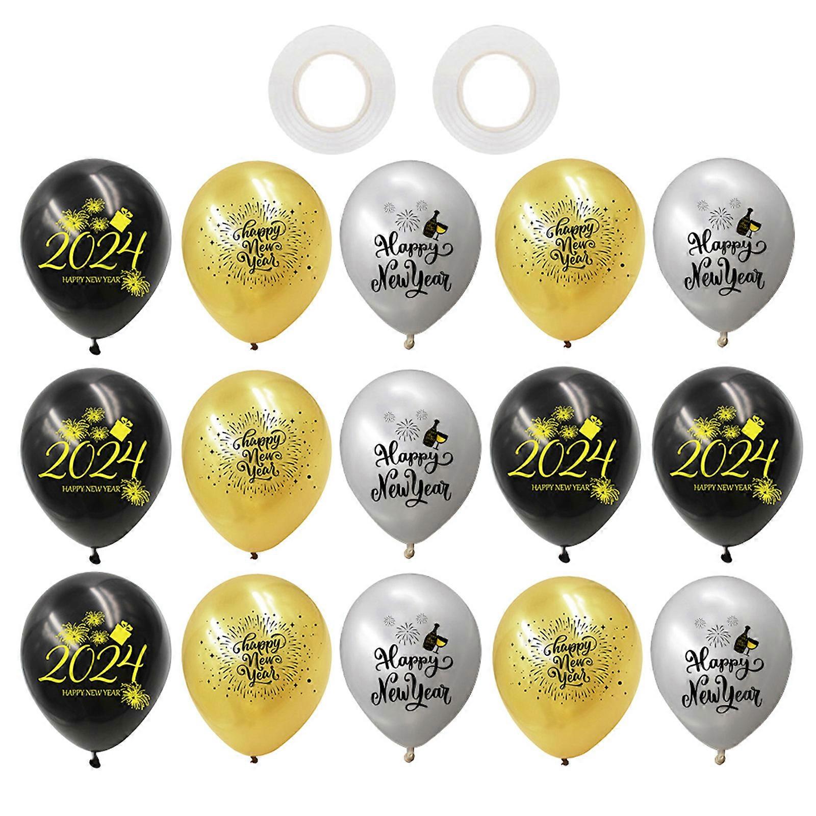 New Year's Eve Party Decoration, Black Gold Happy New Year Balloon Happy New Year Banners Decoration Cake Top Decoration 15 balloons