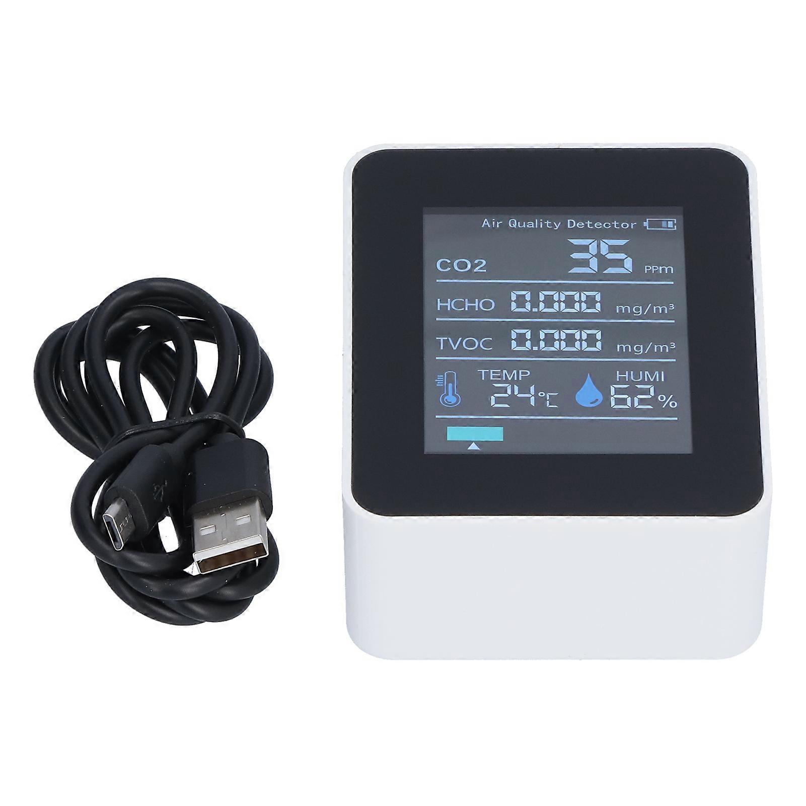 Air Quality Monitor Real Time Smart Colorful Display Clear Alarm System Portable Formaldehyde Detector for Office HomeWhite