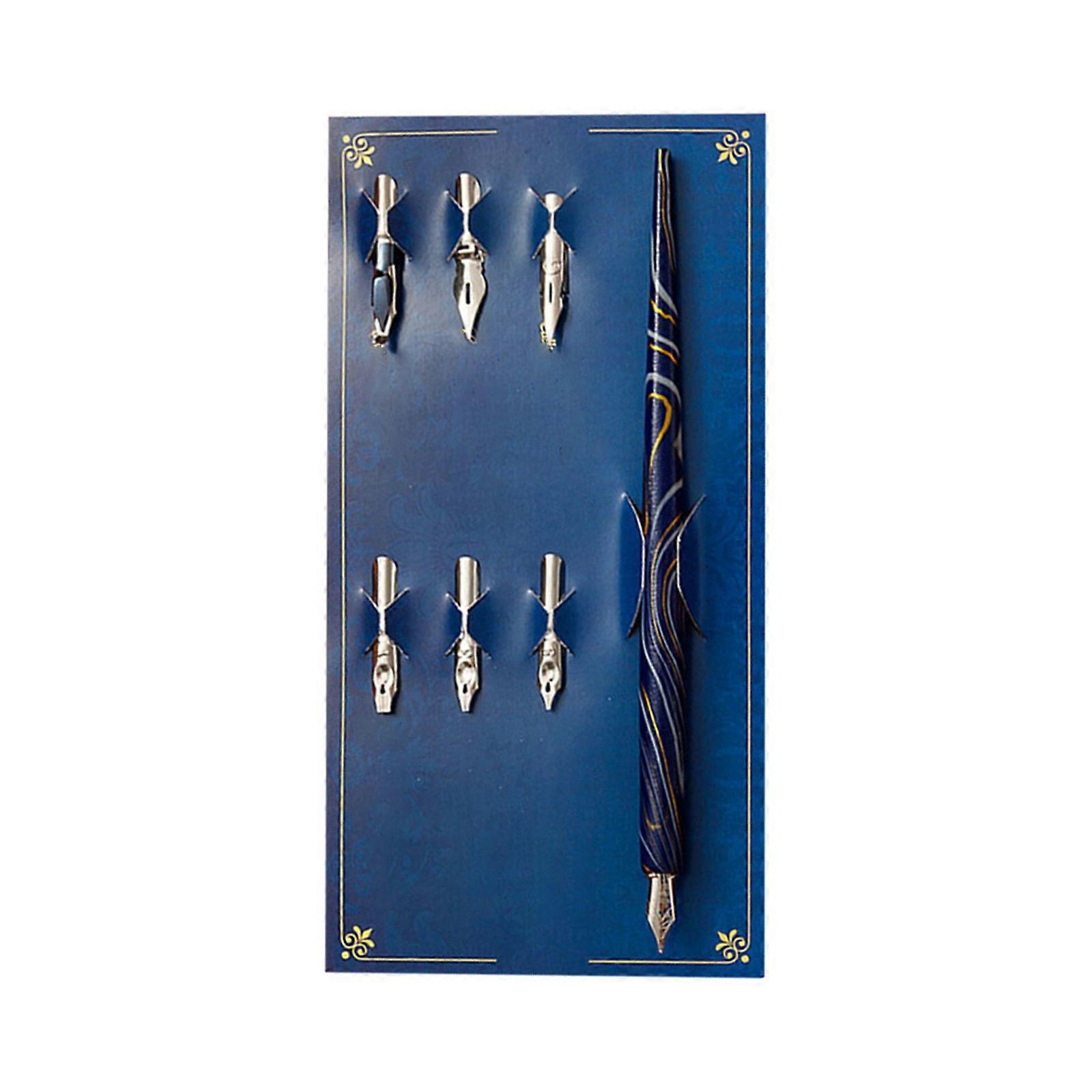 Marble Wood Manga Calligraphy Dip Pen Holder with 6 Nibs for Lettering Skiching Art Drawing Painting Tool sapphire