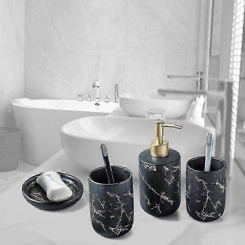Marble Ceramic Bathroom Tumbler Set - 4 Piece Accessory Kit