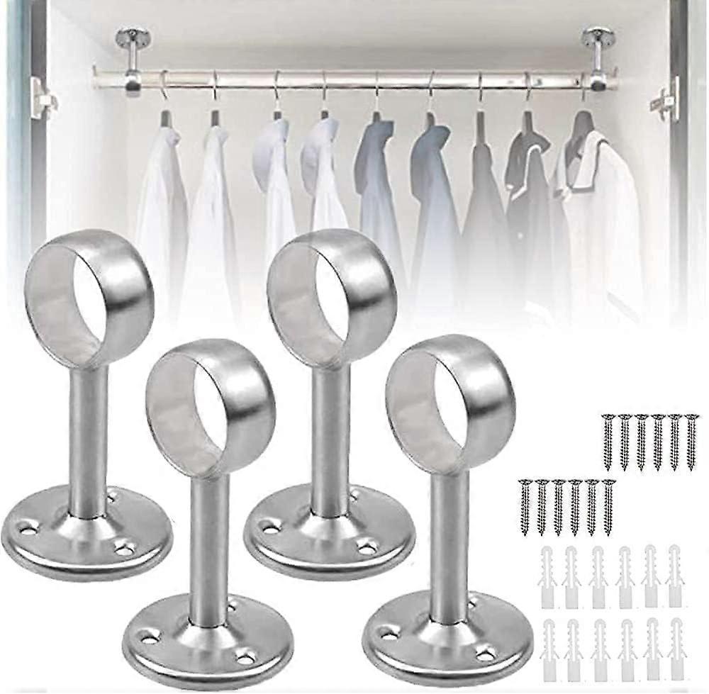 Ceiling mount curtain bracket Stainless Steel Closet Pole Sockets Rod End Supports Wardrobe Pole Holder 4Pcs with Screws for Ceiling Wardrobe Bracket