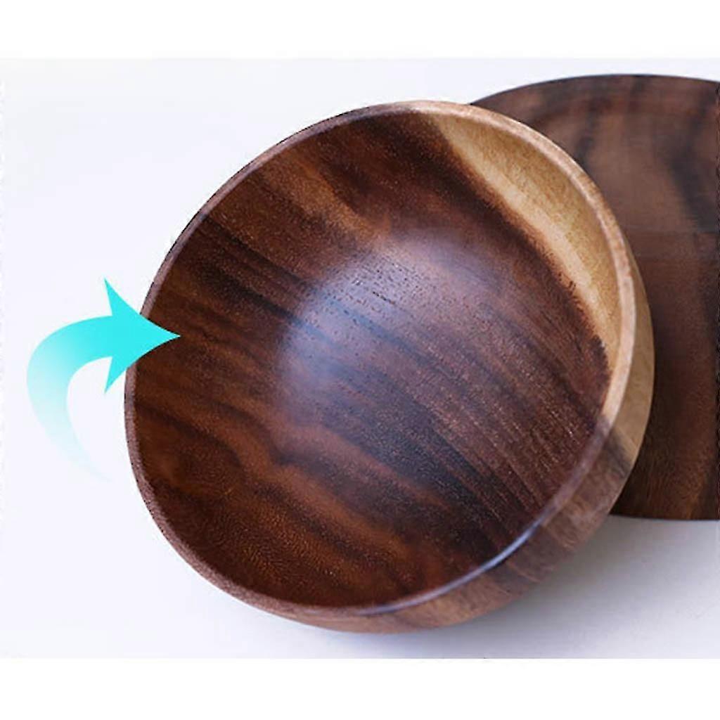 Natural Acacia Wood Bowl Wood Grain Basin Fruit Plate Rice Ramen Salad Container