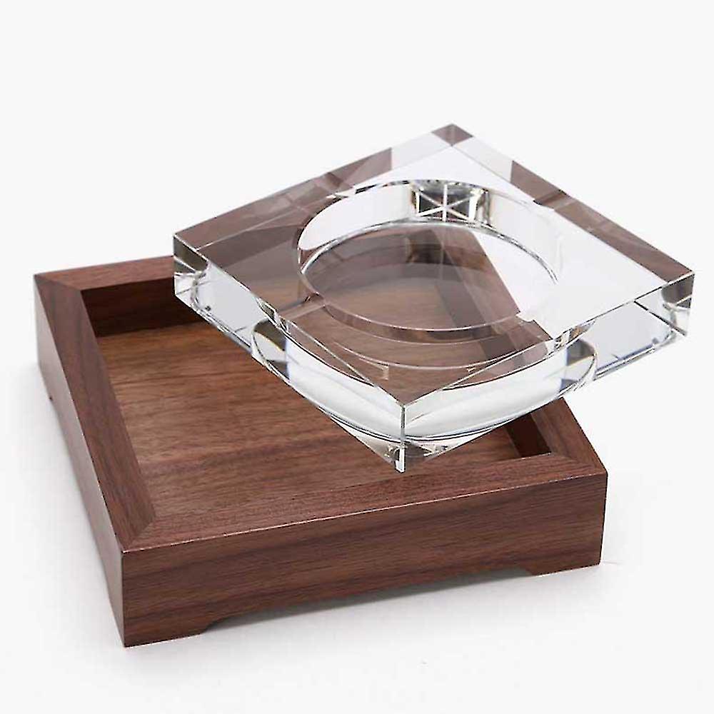 Natural Solid Wood Ashtray Hollow Out Crystal Wooden Desktop Decor For Home Office